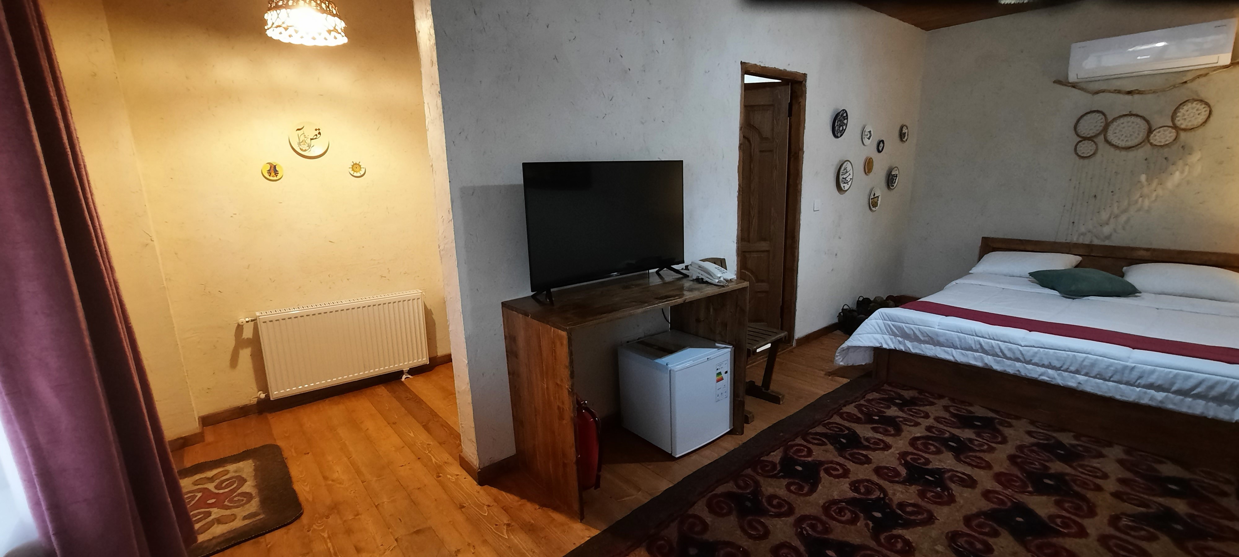 خانه سنتی در روستای کلاچ پا تنکابن - شوکا ** مساحت این خانه روستایی بومگردی 41 متر با محوطه ای بسیار زیبا و رو به جنگل می باشد ، که در طبقه همکف با دو پله واقع شده است. همچنین دارای امکاناتی چون یک تخته دونفره ، یک مبل تخت خواب شو تک نفره ، سرویس بهداشتی فرنگی و حمام در یک فضا و داخل ساختمان تعبیه شده است . پارکینگ با ظرفیت یک ماشین (سواری و شاسی بلند) در حیاط می باشد. ** امکانات رفاهی: سیستم سرمایشی اسپیلت / سیستم گرمایشی بخاری گازی / سشوار / تلویزیون و گیرنده دیجیتال / وای فای رایگان / سرایدار و نگهبان / مینی بار / چایی ساز . ** به علت چوبی بودن سازه ،پخت و پز داخل کلبه ها ممنوع می باشد. ** اقلام بهداشتی: مسواک و خمیر دندان / شامپو / ملحفه. ** فاصله این مجموعه اقامتی تا مرکز شهر تنکابن 30 دقیقه با ماشین می باشد. _ سوپر مارکت ، نانوایی و هلال احمر در 20 کیلومتری می باشد و در داخل مجموع گردشکری کافه و رستوران با 60 نوع غذای ایرانی و فرنگی وجود دارد. از جاذبه های گردشگری اطراف می توان به : آبگرم فلکده 43 کیلومتر ( آبنماهای جاده سه هزار / دشت دریاسر جاده دوهزار / مراکز آموزش پرواز های تفریحی / منطقه گردشگری کرزل / امامزاده سید یحیی / امامزاده سید زکریا با مدت زمان متغیر بین ده تا 40 دقیقه ) و فرودگاه رامسر ، کاخمرمر ، تله کابین رامسر ، جنگل دالیخانی ، ساحل متل قو ، غار دانیال متل قو با مدت زمان یک ساعت اشاره کرد. ** در این مجموعه گردشگری خدمات ماساژ باهزینه جدا ارائه داده می شود. اگر به دنبال یک مکان بسیار زیبا و رویایی برای سورپرایز کردن همسر خود و یا سالگرد ازدواج می باشید ما به شما این کلبه های چوبی را پیشنهاد می دهیم و در صورت درخواست ، برگزاری جشن دونفره و سورپرایز کردن (هماهنگی از قبل و هزینه جداگانه ) پذیرفته می شود. این اقامتگاه به علت وجود پله های متعدد در اطراف خانه برای افراد معلول یا سالمند مناسب نمی باشد. درجه کیفیت این خانه سنتی درجه یک می باشد.