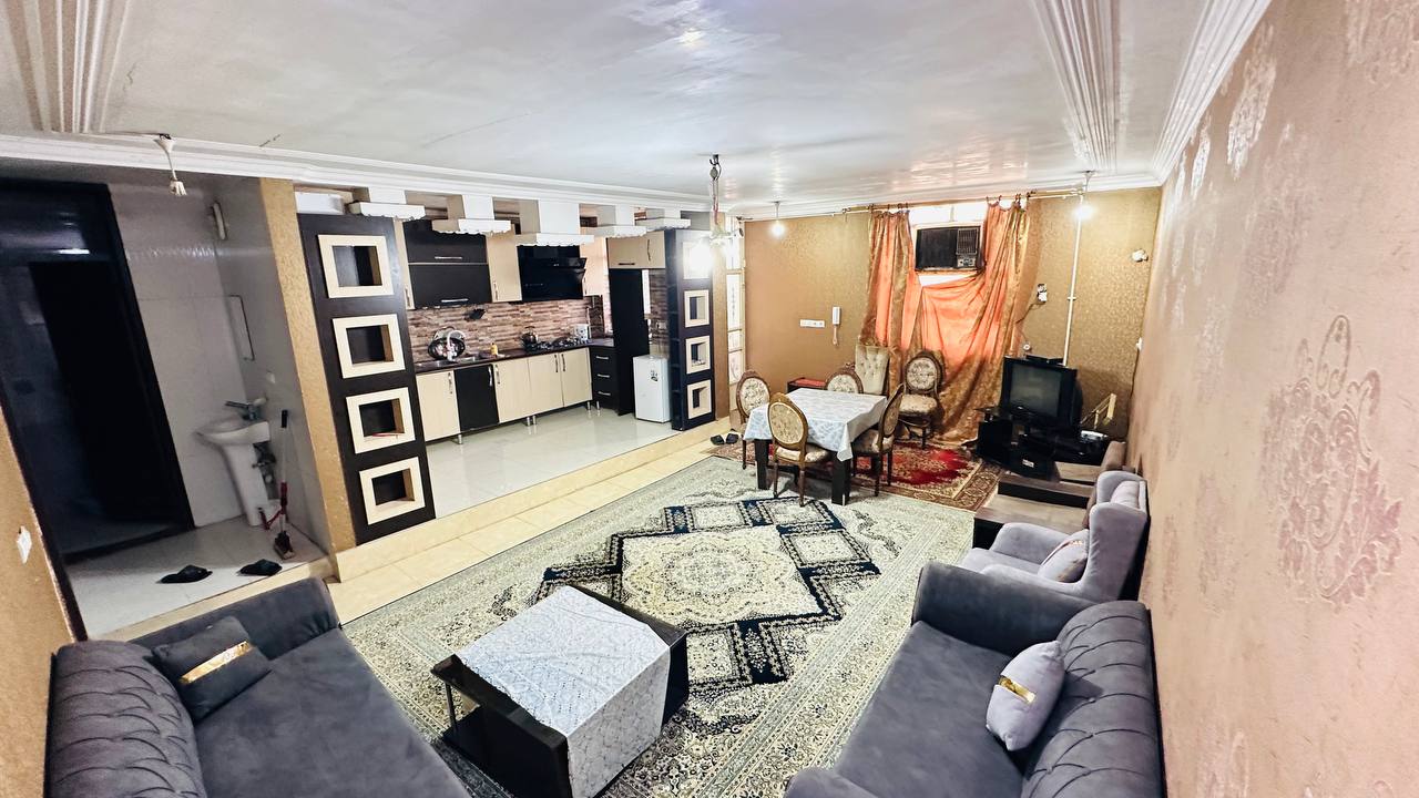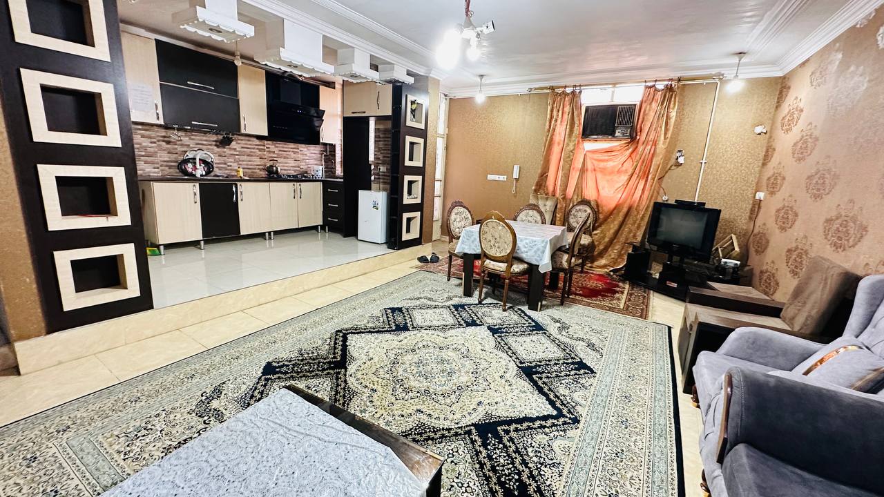 آپارتمان مبله در خیابان چهارم - سنایی - اهواز با متراژ 90 متر دارای یک اتاق خواب و سرویس خواب دو تخت تک نفره ، کف خواب ( پتو - بالشت - تشک ) به تعداد 4 نفر در طبقه اول با 13 پله بدون آسانسور واقع شده است . از امکانات این آپارتمان می توان به : تجهیزات آشپزی و امکان طبخ غذا ، تراس ، منقل سنتی ، کمد