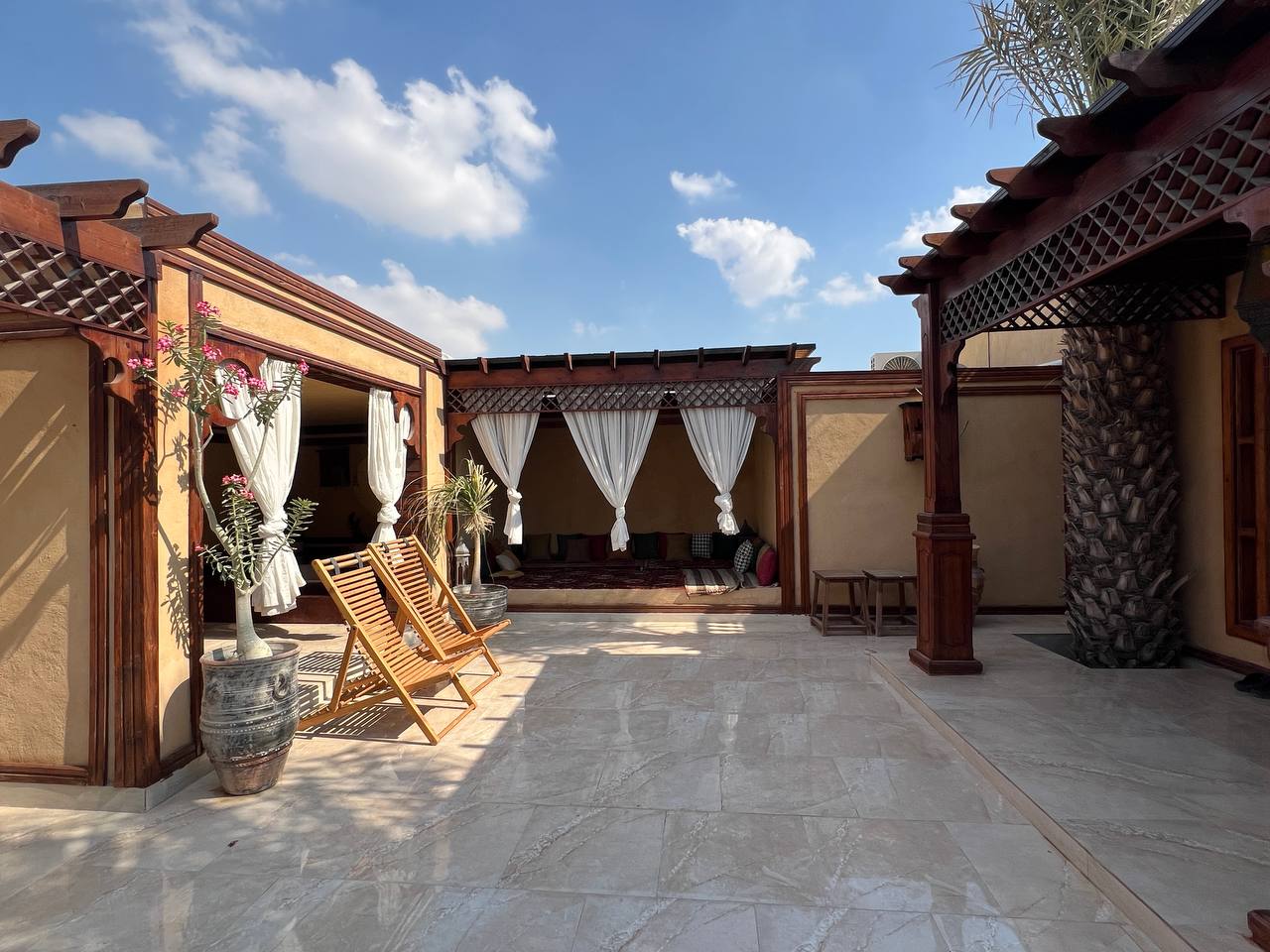 این اقامتگاه با مساحت کل 10 هزار متر واقع در حد فاصل روستای سهیلی و هفت رنگو ، نرسیده به شهر طبل در فضایی گرم و دلنشین مجاور نخلستان بزرگ با بنایی مسحورکننده و دیدنی ، پذیرای میهمانان عزیز است . واحد های vip با متراژ 150 متر دارای یک نشیمن / دو اتاق مستر / جکوزی / سرویس بهداشتی فرنگی و حمام به صورت هم فضا و یک حیاط بسیار زیبا و مستقل می باشد . سوئیت های vip دارای یخچال / مایکروفر / سینک ظرفشویی / کافی بار و چای ساز می باشند اما امکان پخت و پز در هیچ یک از واحدها وجود ندارد . سیستم سرمایشی و گرمایشی موجود در هر واحد اسپیلت می باشد . اقامتگاه دارای پارکینگ اختصاصی می باشد و برای هر واحد امکان پارک 1 الی 2 خودرو به صورت غیرمسقف وجود دارد . این اقامتگاه دارای برنامه های شب نشینی و جشن و موسیقی به صورت رایگان تا ساعت 12 بامداد است و سپس خاموشی جهت استراحت ایجاد می شود. ( در ایام ماه مبارک رمضان امکان برگذاری جشن و موسیقی وجود ندارد ) اقامتگاه دارای تورهای VIP شامل ( ساحل اختصاصی / شام ناخدا / لنج / گشت جزیره / موسقی محلی و ... ) می باشد که در زمان های خاص و با هزینه مجزا برگذار میگردد . فاصله تقریبی تا مکان های مهم : سوپرمارکت و نانوایی 5 دقیقه / دریا 10 دقیقه / قشم 54 کیلومتر / شهر طبل 3 کیلومتر / شهر سوزا 39 کیلومتر / بندر لافت 30 کیلومتر / بندر دولاب 36 کیلومتر / رمکان 49 کیلومتر / درگهان 47 کیلومتر / فرودگاه 10 کیلومتر