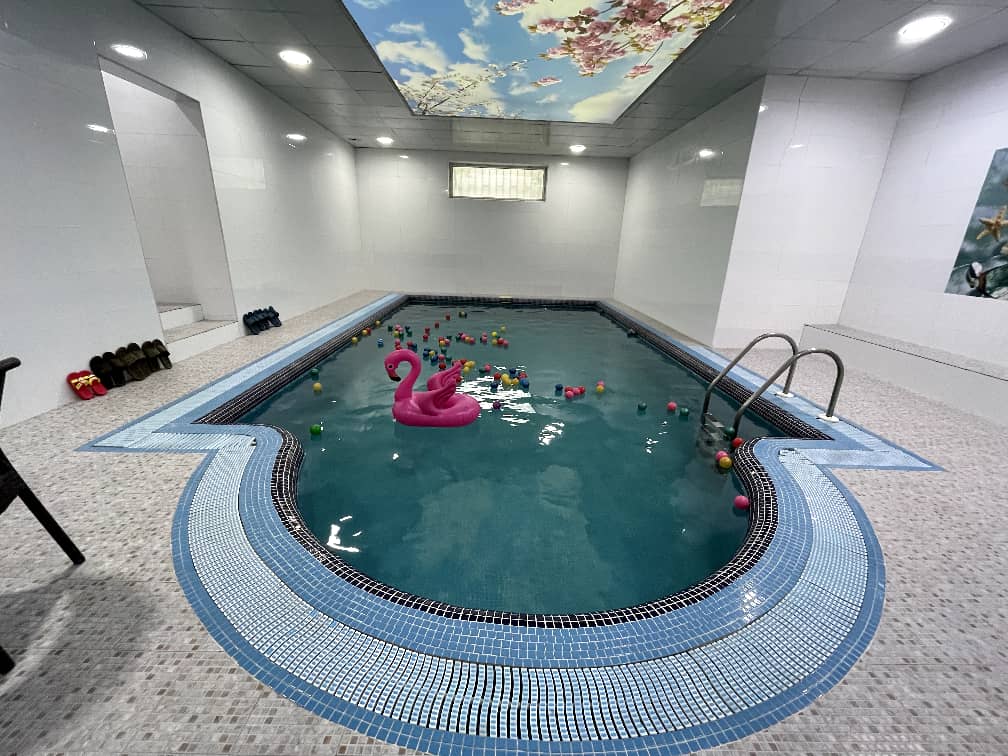ویلا با استخر سرپوشیده آبگرم با فضای سنتی در بلوار کازینو ( ساحل 9 ) - رامسر - مازندران با متراژ کل 600 متر و زیربنا 250 متر دارای سه اتاق خواب و سرویس خواب دو تخت دو نفره ، یک تخت تک نفره و یک عدد سرویس خواب سنتی (هر خواب داری تم خواب مجزابرای هرفصل سال می باشد) در طبقه همکف و نزدیک به ساحل واقع شد