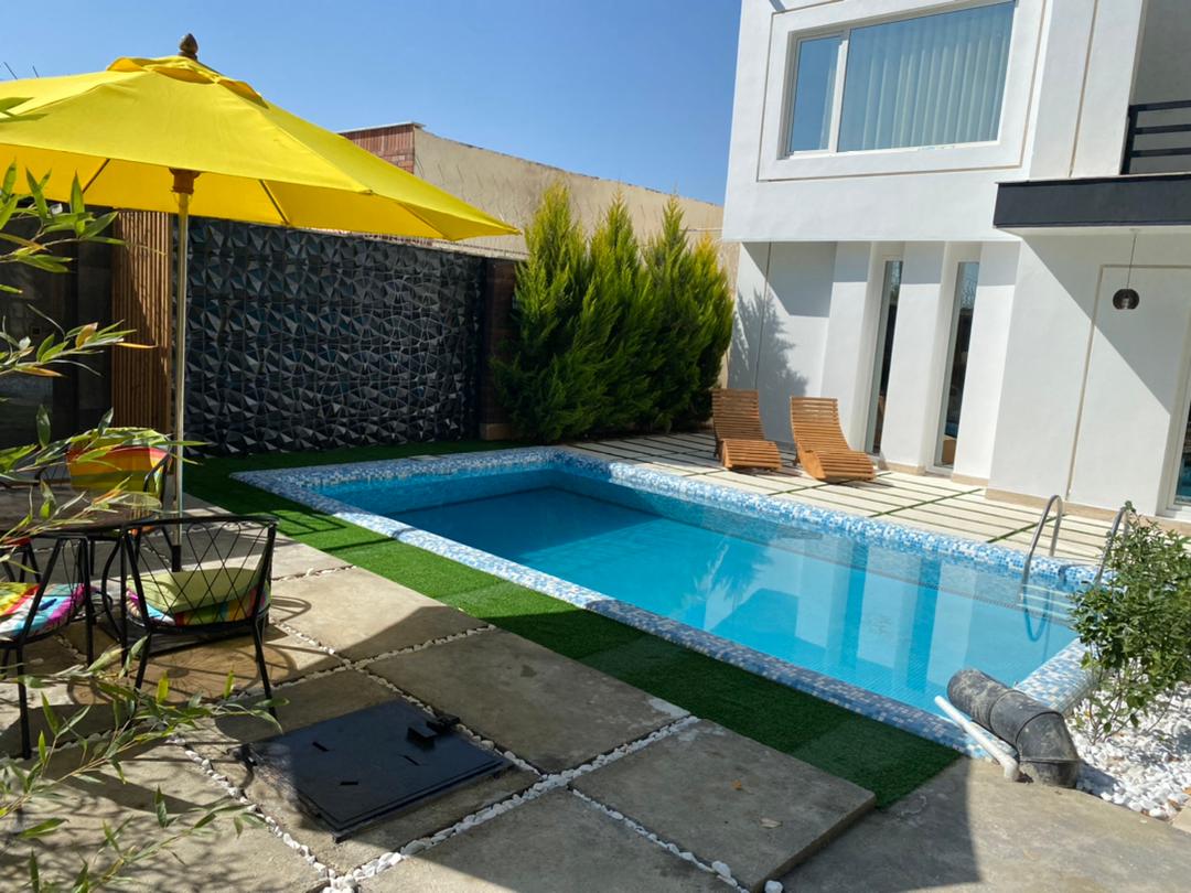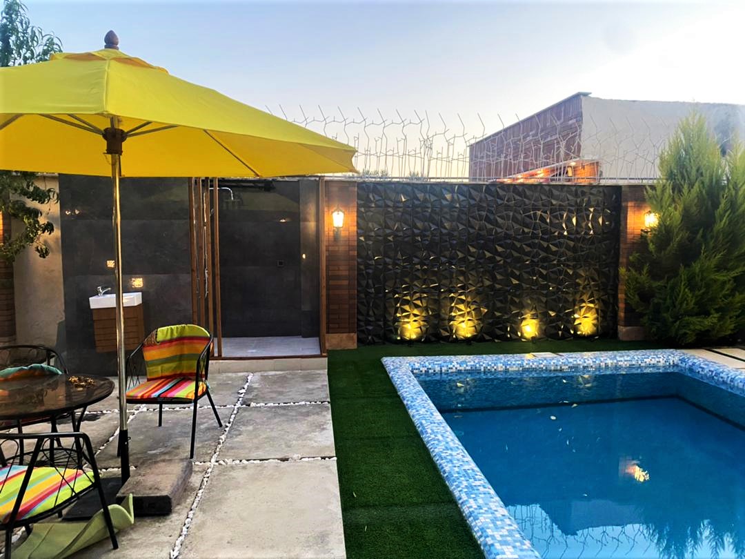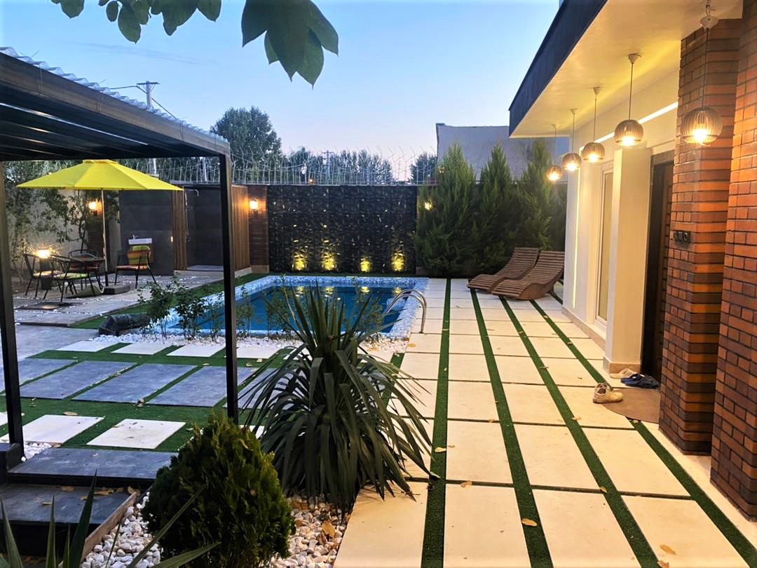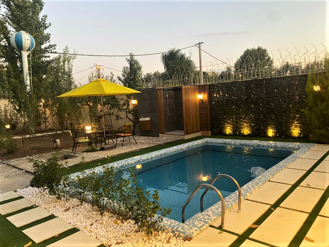ویلا دوبلکس با استخر روباز آب گرم در روستای لشگرآباد - کرج - البرز با متراژ کل 800 متر و زیربنا 200 متر در طبقه همکف ، و دوبلکس 15 پله در محیطی آرام واقع شده است . _ از دیگر امکانات این ویلا : سرویس خواب سنتی ( پتو - بالش - تشک ) به تعداد 6 نفر ، ظروف به تعداد 6 نفر و آتشکده ای دنج در حیاط زیبای