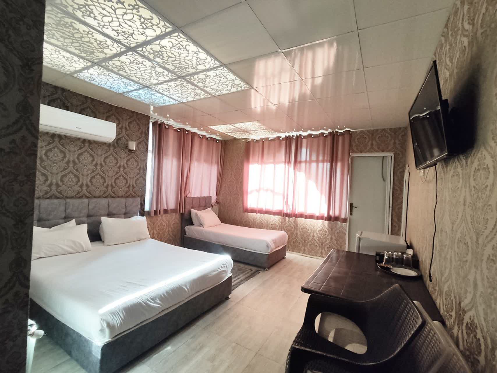 هتل سه تخته دررالبرز با متراژ کل 2000 متر و زیربنا 20 متر در طبقه سوم با 48 پله به همراه محافظ و آسانسور ، واقع شده است. - از امکانات این واحد هتل: - سیستم سرمایشی و گرمایشی فن کویل ، ظروف به تعداد سه نفر است. - سرویس بهداشتی ایرانی مشترک در لابی - فرنگی و حمام که با هم در یک فضا تعبیه شده است.
