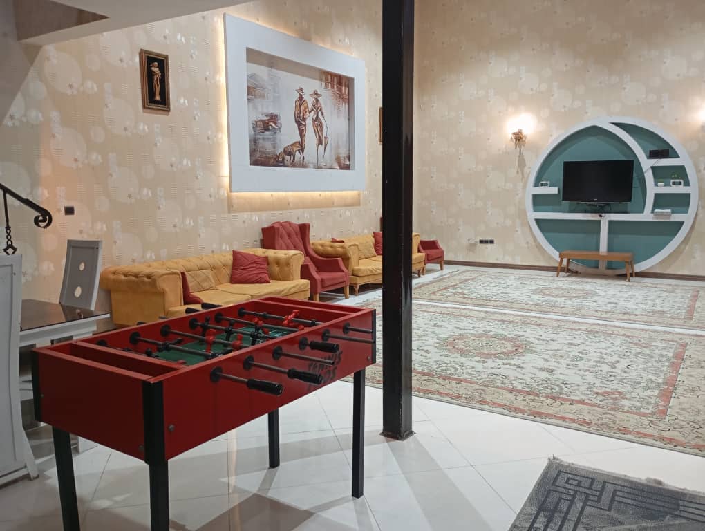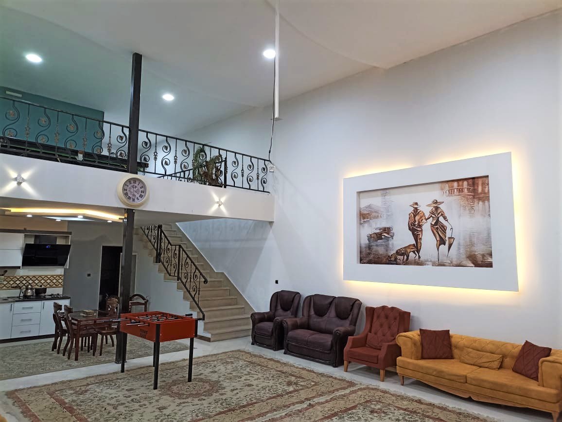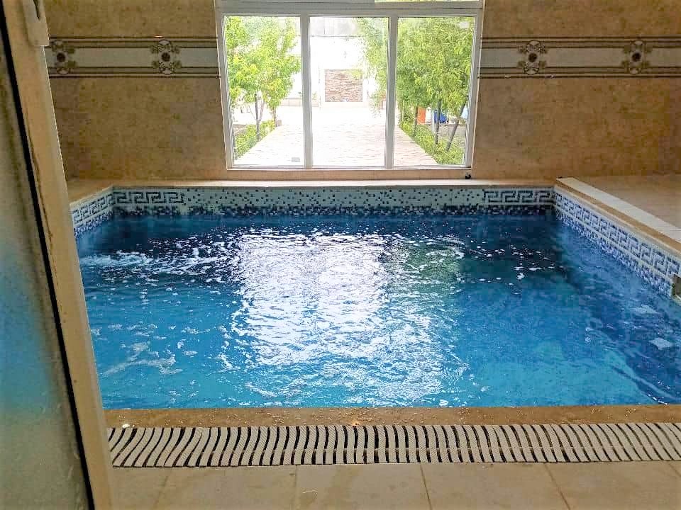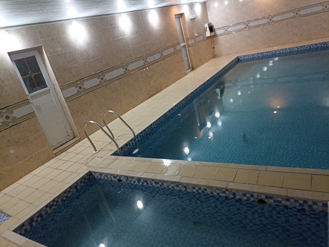 این ویلا به صورت دوبلکس است و یکی از اتاق خواب ها در بالا می باشد که برای رفتن به بالا 18 پله به همراه محافظ قرار دارد استخر کودک دارد.ابعادهردو استخر 4 در12 میباشد بعد از شنا در استخر نیز یک حمام جهت دوش تعبیه شده است . سیستم سرمایشی در سالن ( کولر آبی ) سیستم سرمایشی در سالن و اتاق ها ( بخاری