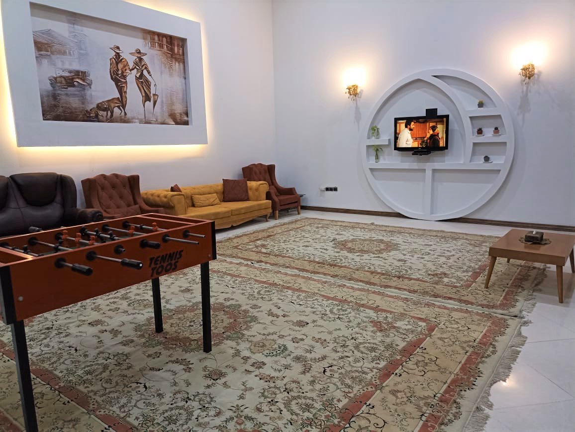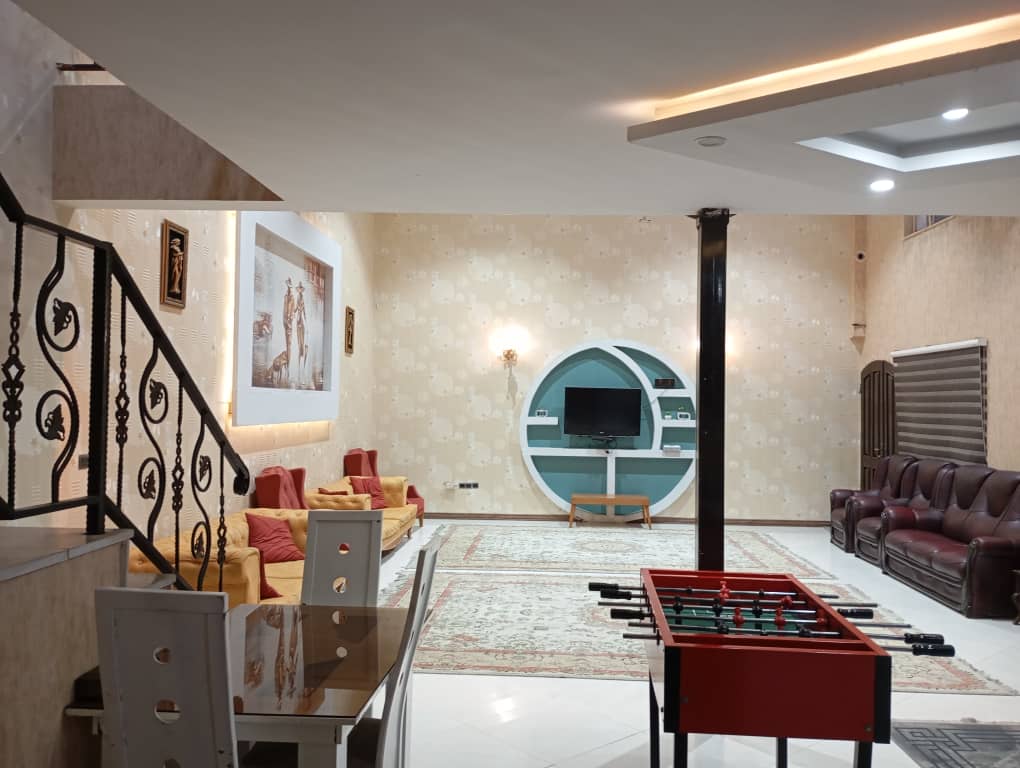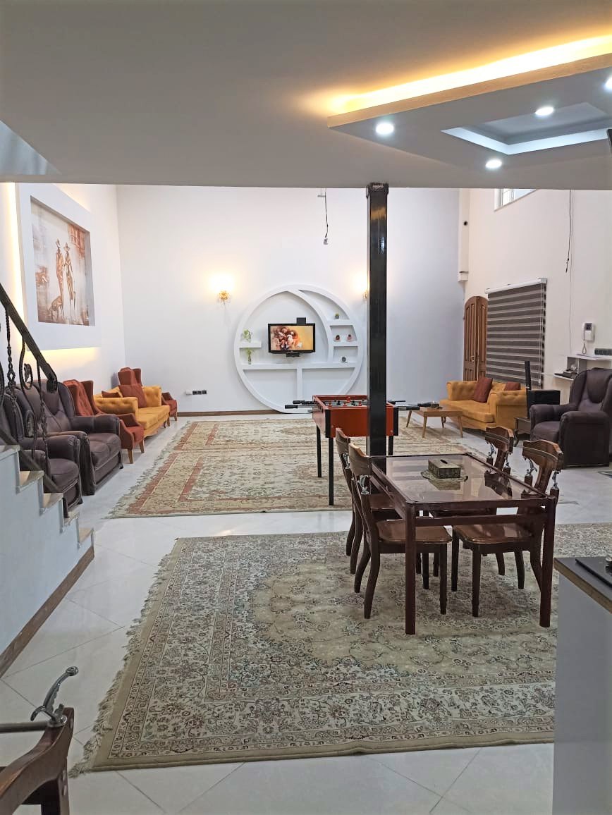 این ویلا به صورت دوبلکس است و یکی از اتاق خواب ها در بالا می باشد که برای رفتن به بالا 18 پله به همراه محافظ قرار دارد استخر کودک دارد.ابعادهردو استخر 4 در12 میباشد بعد از شنا در استخر نیز یک حمام جهت دوش تعبیه شده است . سیستم سرمایشی در سالن ( کولر آبی ) سیستم سرمایشی در سالن و اتاق ها ( بخاری