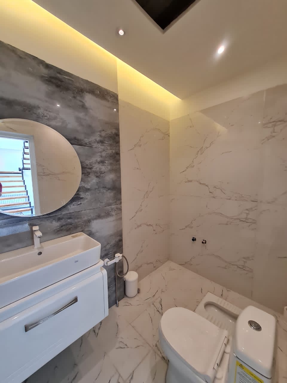 ویلا به صورت تریبلکس می باشد که در طبقه همکف با 4 پله : سالن ، آشپزخانه ، سرویس بهداشتی ایرانی و فرنگی با هم در یک فضا ، قرار دارد ، در طبقه همکف یک حیاط پشتی وجود دارد که جکوزی و یک دوش در آن جا قرار گرفته است ، در طبقه اول با 14 پله : ایرهاکی و 3 اتاق خواب ، که همه اتاق ها به صورت مستر می باشند و
