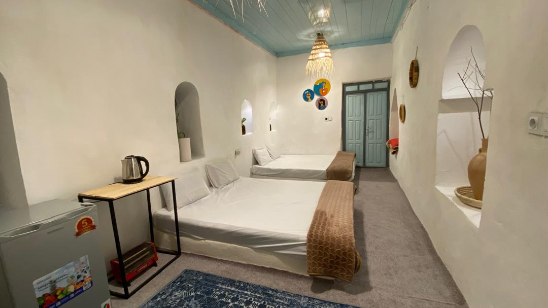 این اقامتگاه با مساحت کل 450 متر دارای 4 واحد قابل رزرو شامل 2 اتاق دوتخته با متراژ 25 متر ، یک اتاق سه تخته با متراژ 40 متر و یک اتاق چهارتخته با متراژ 50 متر در شهر طبل جزیره قشم در فاصله حدودی 3 دقیقه ای با دریا و جنگل زیبای حرا واقع شده است . اتو درصورت درخواست در اختیار مسافران قرار داده می شود . سرویس بهداشتی فرنگی و حمام به صورت هم فضا در داخل واحد و سرویس ایرانی به صورت مشترک در حیاط اقامتگاه تعبیه شده است . صبحانه به صورت سلف سرویس و ناهار و شام درصورت درخواست قبلی با هزینه مجزا قابل سفارش است . امکان برگزاری موسیقی محلی و جشن به درخواست میهمانان گرامی با هزینه مجزا قابل اجرا می باشد . اقامتگاه فاقد پارکینگ اختصاصی می باشد و امکان پارک خودرو در جلو درب اقامتگاه به صورت غیرمسقف وجود دارد . فاصله تقریبی تا مکان های مهم : سوپرمارکت و نانوایی 1 دقیقه پیاده جنب اقامتگاه / درمانگاه و داروخانه 1 دقیقه پیاده / رستوران 200 متر / فرودگاه دیرستان 20 دقیقه / روستای سهیلی 7 کیلومتر / دریا ساحل شنی سلخ 10 دقیقه / دریا و جنگل حرا 3 دقیقه / قشم 55 دقیقه - 68 کیلومتر / درگهان 40 دقیقه