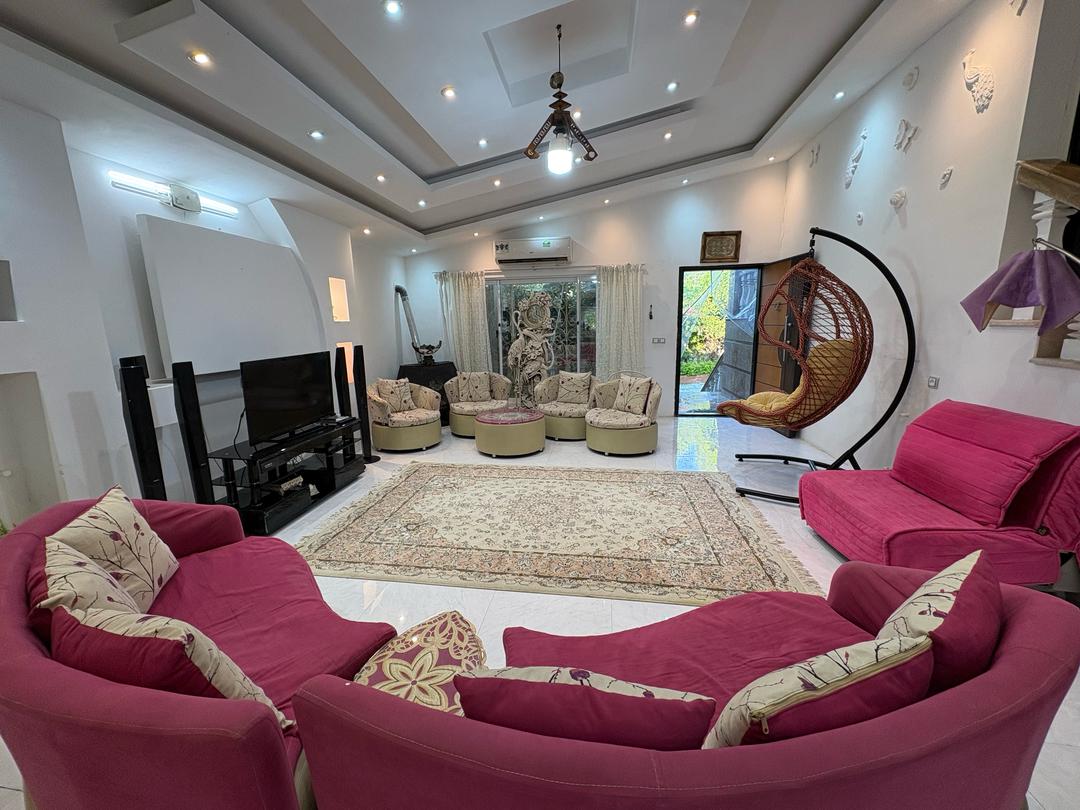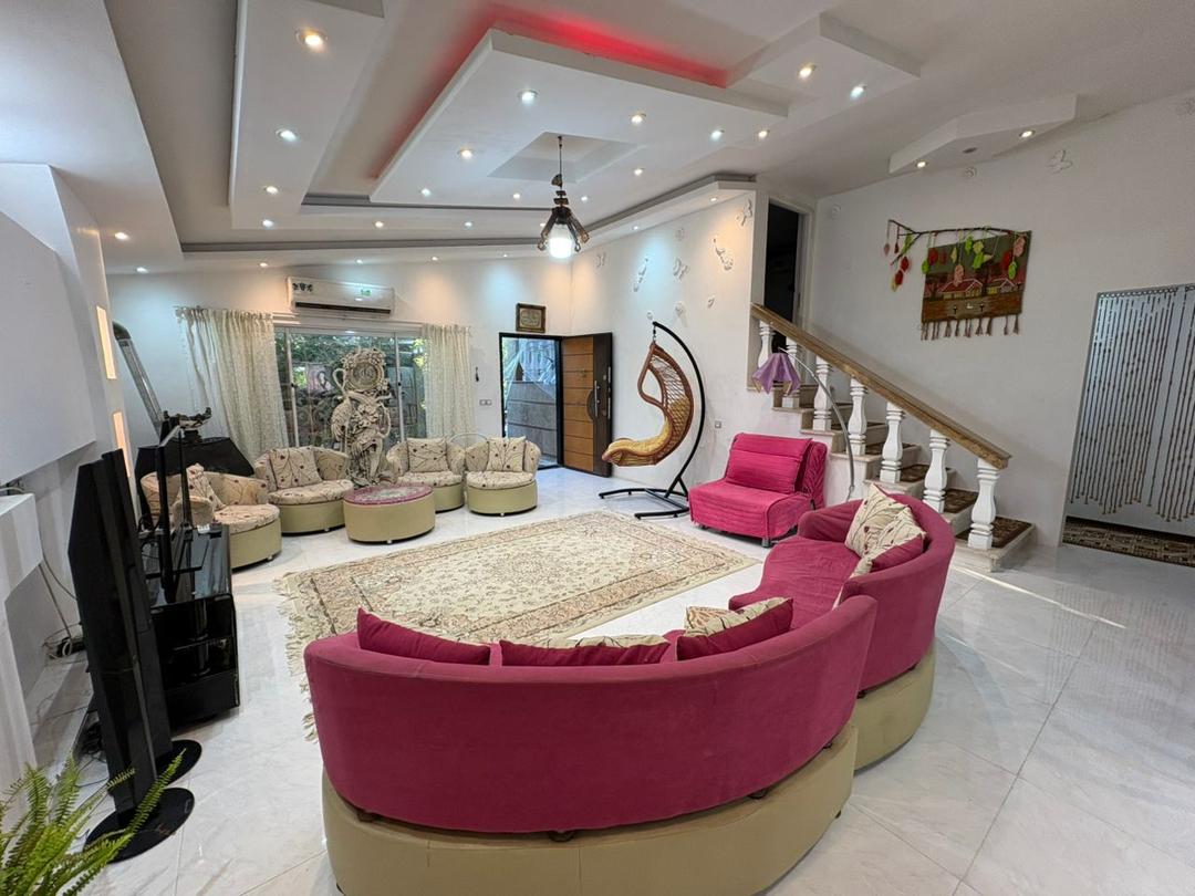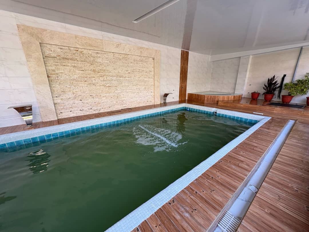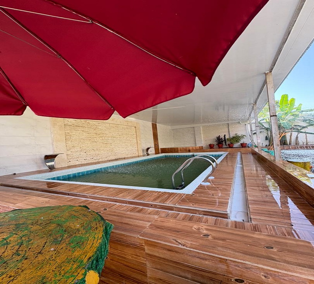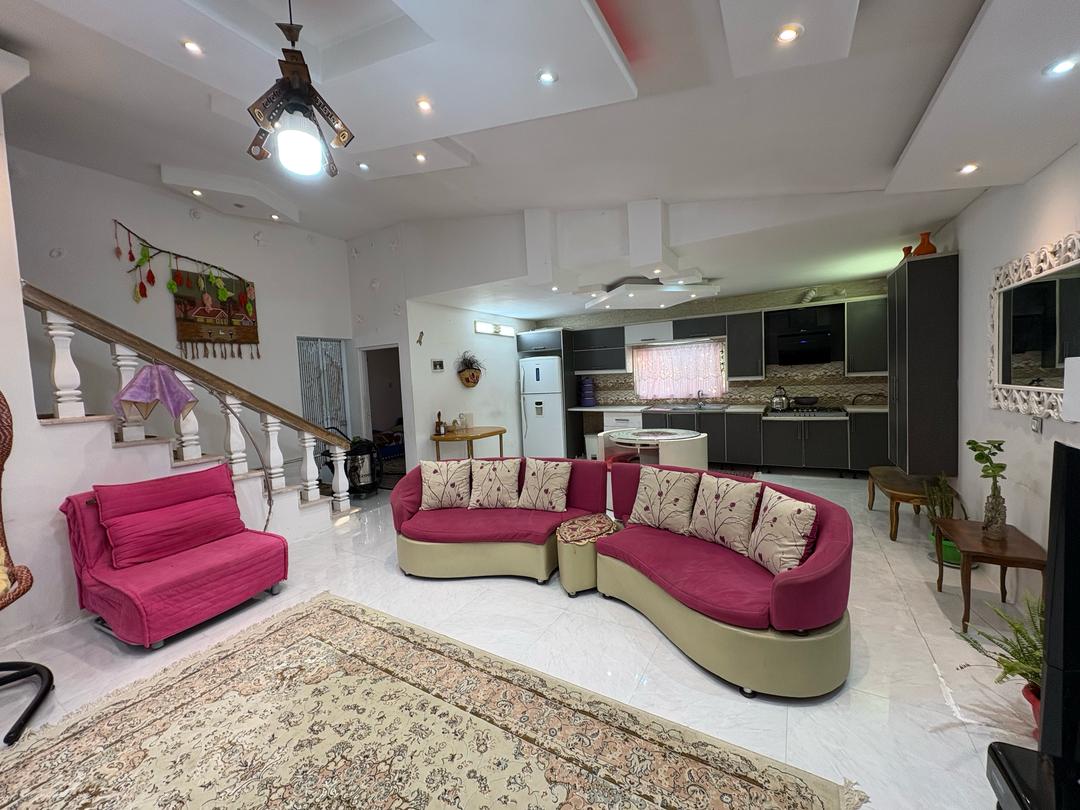 این اقامتگاه با مساحت کل 800 متر و متراژ بنا 200 متر نیم پیلوت میباشد که ورودی واحد با 6 پله در طبقه همکف دارای سالن / آشپزخانه / سرویس بهداشتی ایرانی و سرویس فرنگی و حمام به صورت هم فضا و یک اتاق مستر و با 7 پله در طبقه بالا یک اتاق خواب تعبیه شده است . سیستم گرمایشی بخاری گازی و سیستم سرمایشی اس