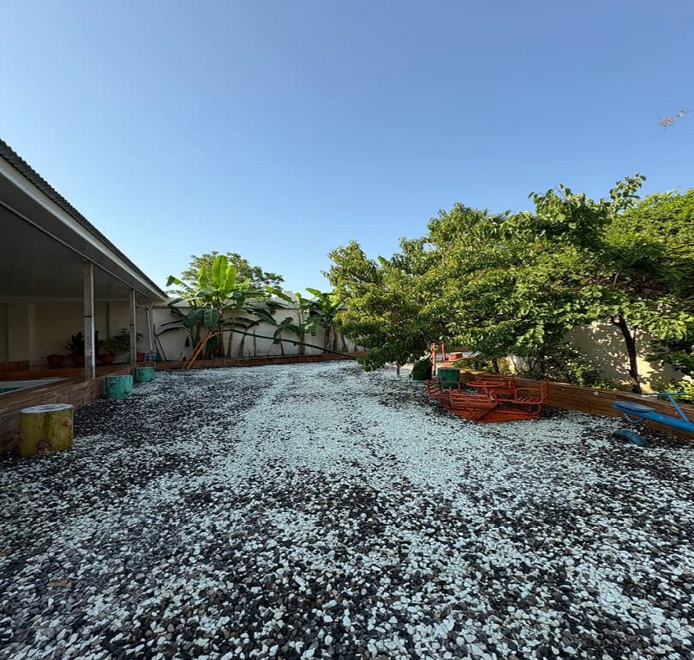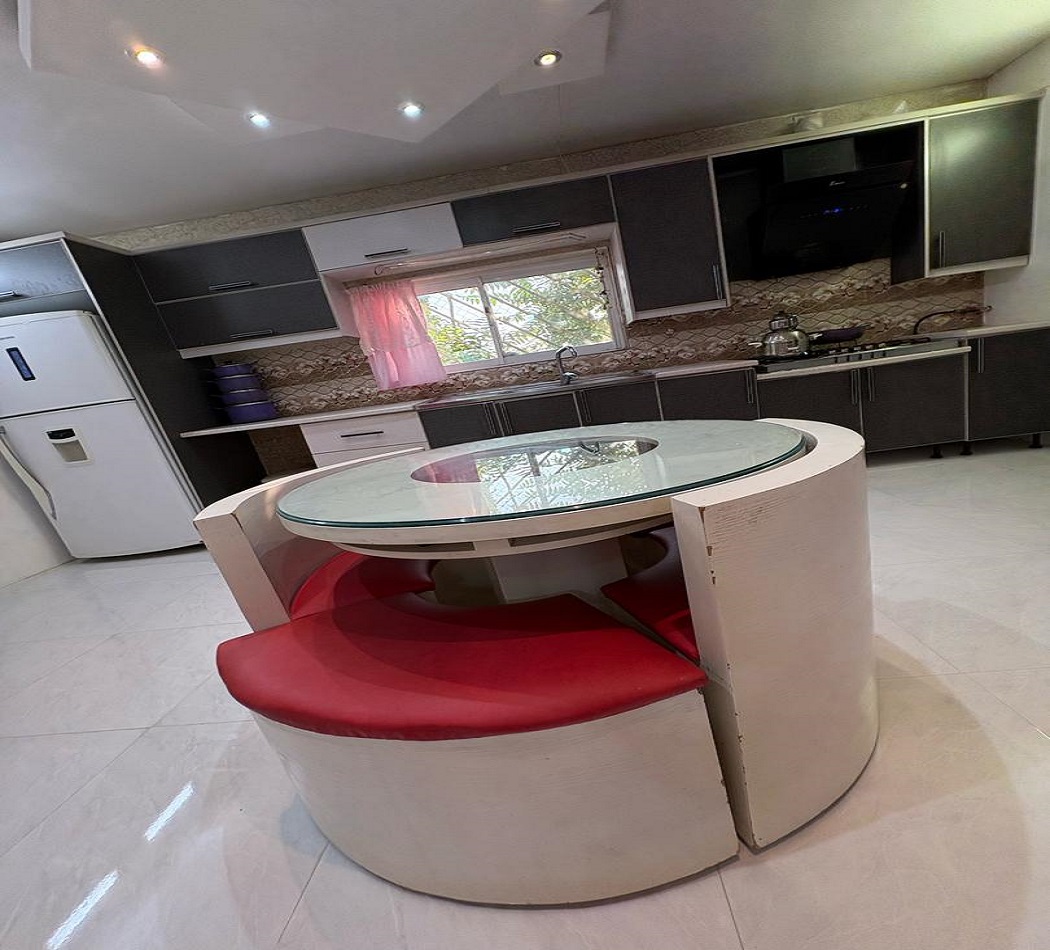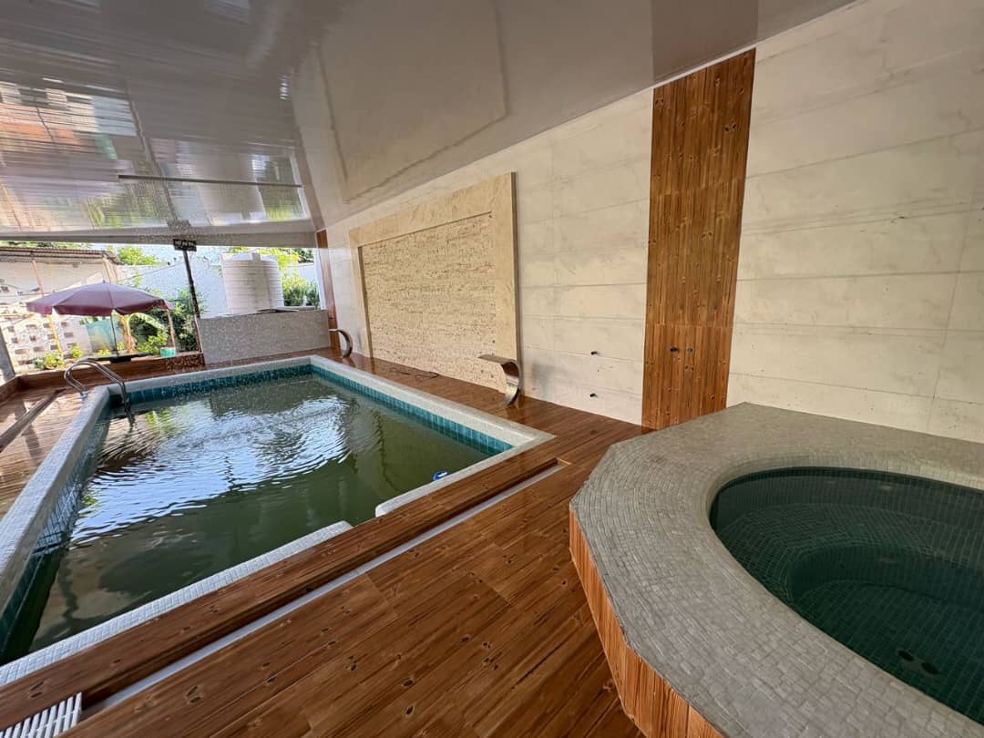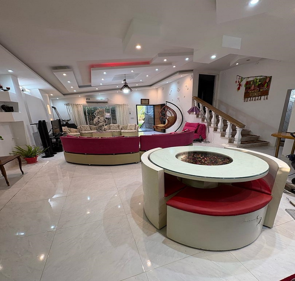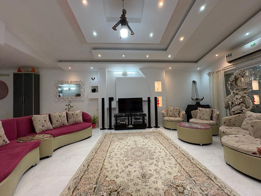 این اقامتگاه با مساحت کل 800 متر و متراژ بنا 200 متر نیم پیلوت میباشد که ورودی واحد با 6 پله در طبقه همکف دارای سالن / آشپزخانه / سرویس بهداشتی ایرانی و سرویس فرنگی و حمام به صورت هم فضا و یک اتاق مستر و با 7 پله در طبقه بالا یک اتاق خواب تعبیه شده است . سیستم گرمایشی بخاری گازی و سیستم سرمایشی اس