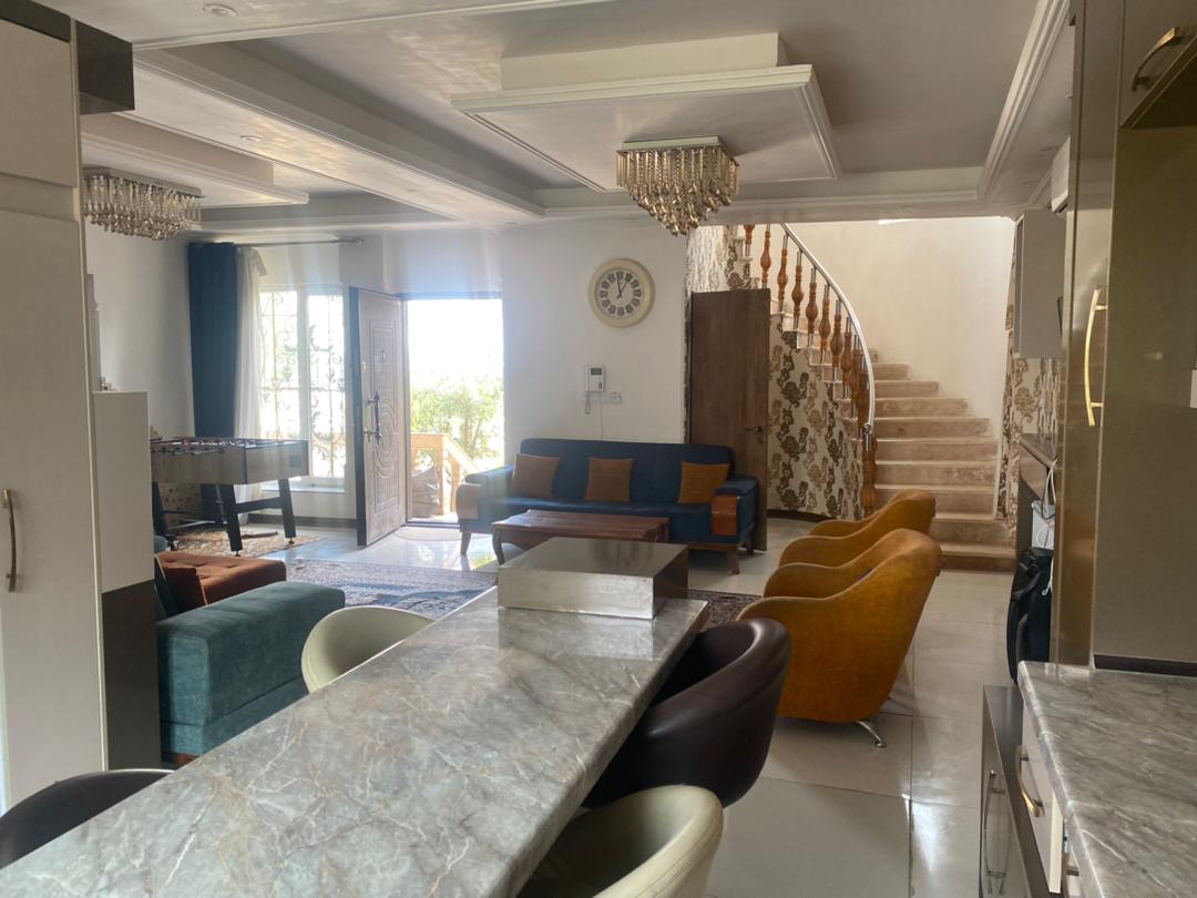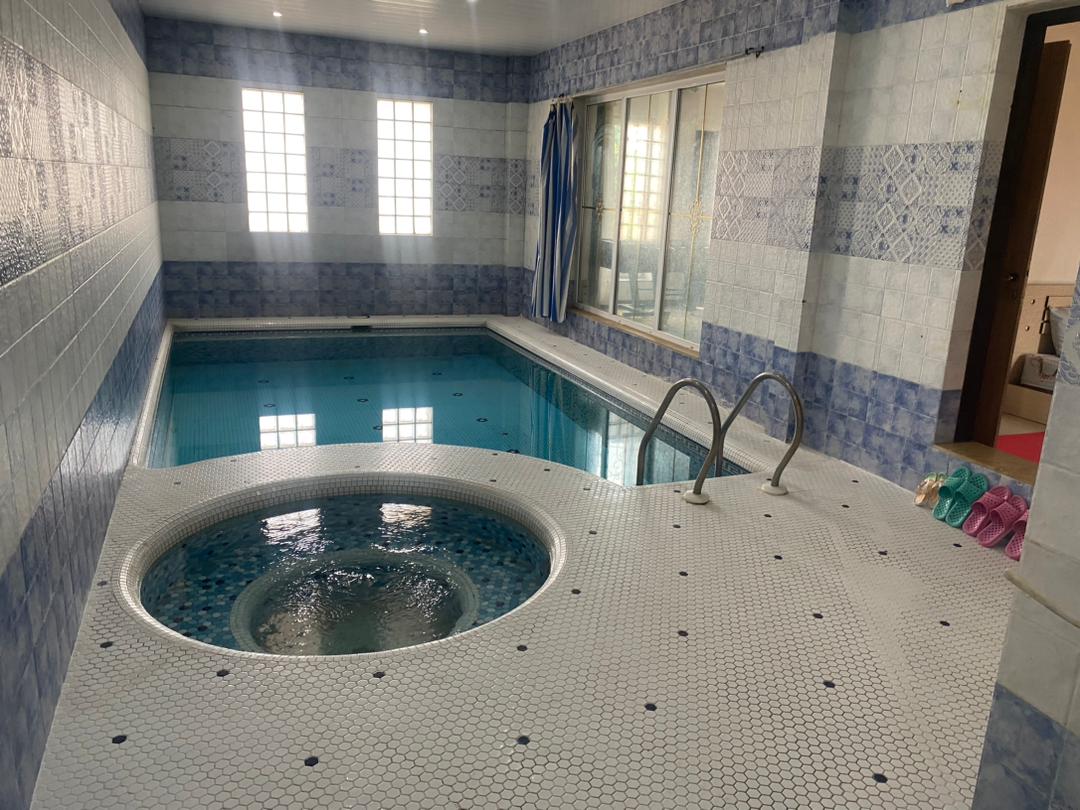 این ویلا با مساحت کل 240 متر و متراژبنا 220 متر با 5 پله ورودی دوبلکس می باشد که در طبقه همکف جکوزی 4 نفره و استخر سرپوشیده 4 فصل با عمق 1.60 و طول 6 متر و عرض 4.5 متر / سالن / آشپزخانه / یک اتاق خواب / سرویس بهداشتی ایرانی و حمام و با 19 پله در طبقه اول دوبلکس 3 اتاق خواب مستر / وسایل سرگرمی از جمل