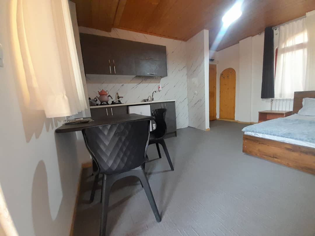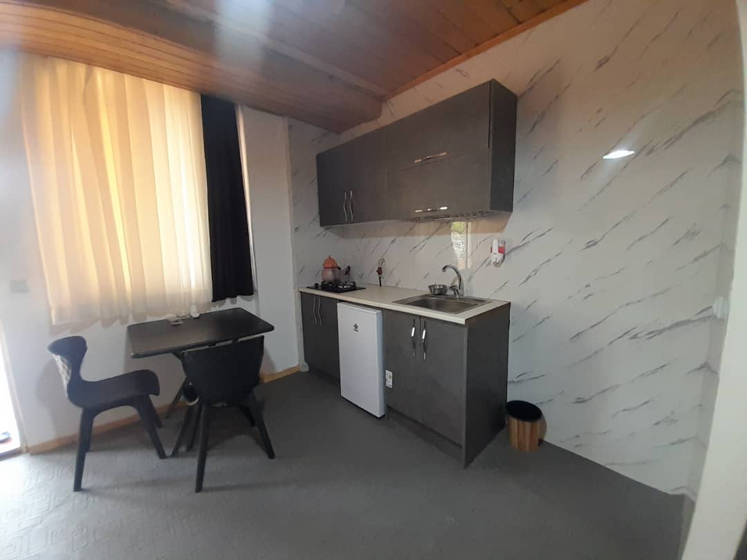 این سوئیت درطبقه همکف یک مجتمع آپارتمانی در کلارآباد در فاصله تقریبی 100 متری با دریا قرار دارد . سرویس بهداشتی فرنگی و حمام هم فضا در داخل واحد تعبیه شده است . حیاط و ورودی این اقامتگاه مشترک می باشد . نگهبان در داخل مجتمع سکونت دارد . فاصله تقریبی تا مکان های مهم : سوپر مارکت 100 متر / ن