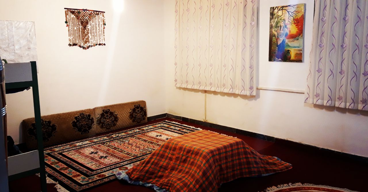 اجاره اقامتگاه بومگردی در روستای کهک دلیجان - اتاق1 درب ورودی این اقامتگاه بومگردی دارای 12 پله می باشد . این اتاق سنتی دارای یک مبل سنتی و دو تخت خواب تک نفره دوطبقه می باشد. فاصله تا سوپرمارکت و نانوایی 10 کیلومتر / 25 کیلومتر تا رستوران از جاذبه های گردشگری روستای کهک دلیجان میتوان ب