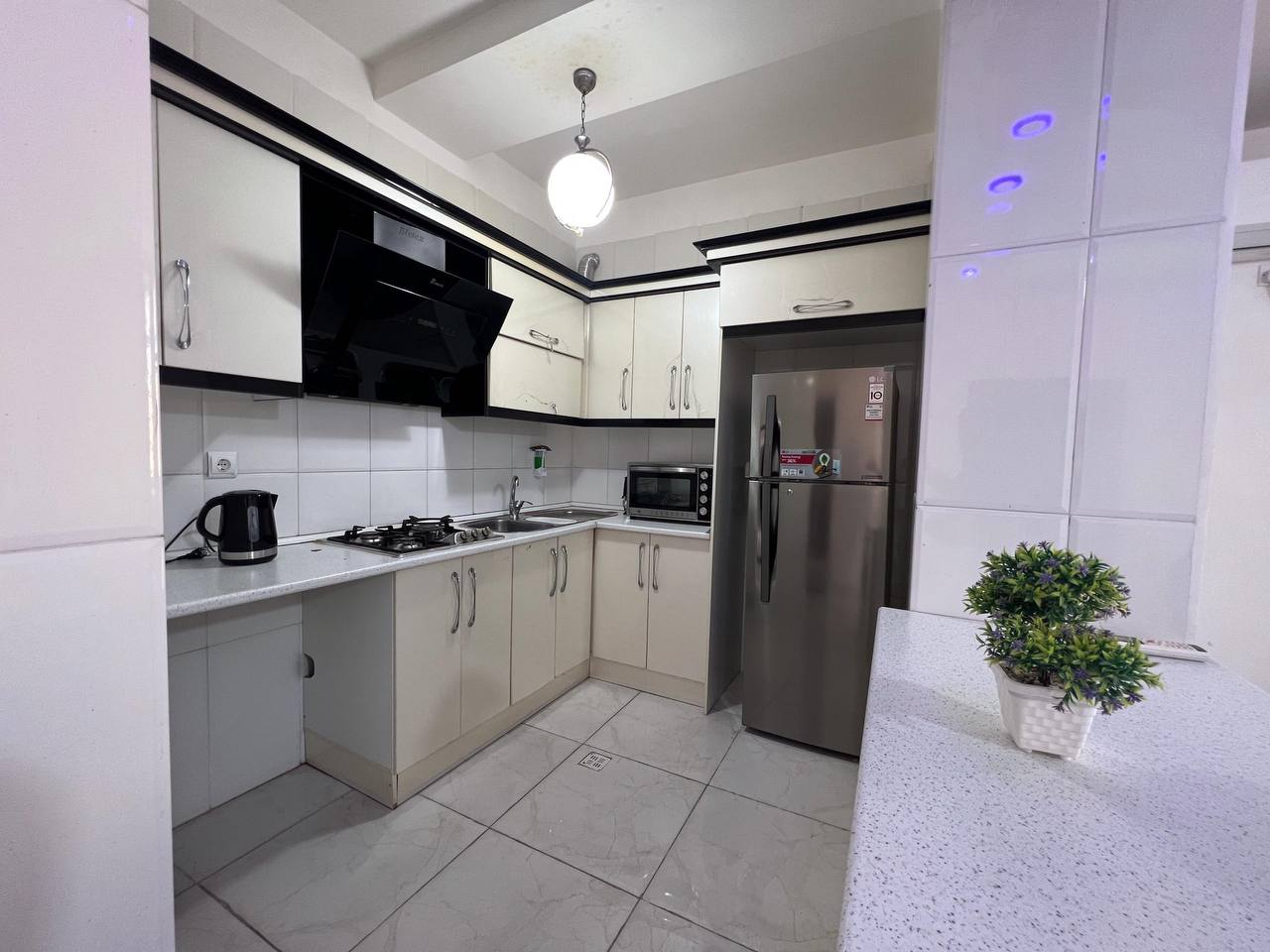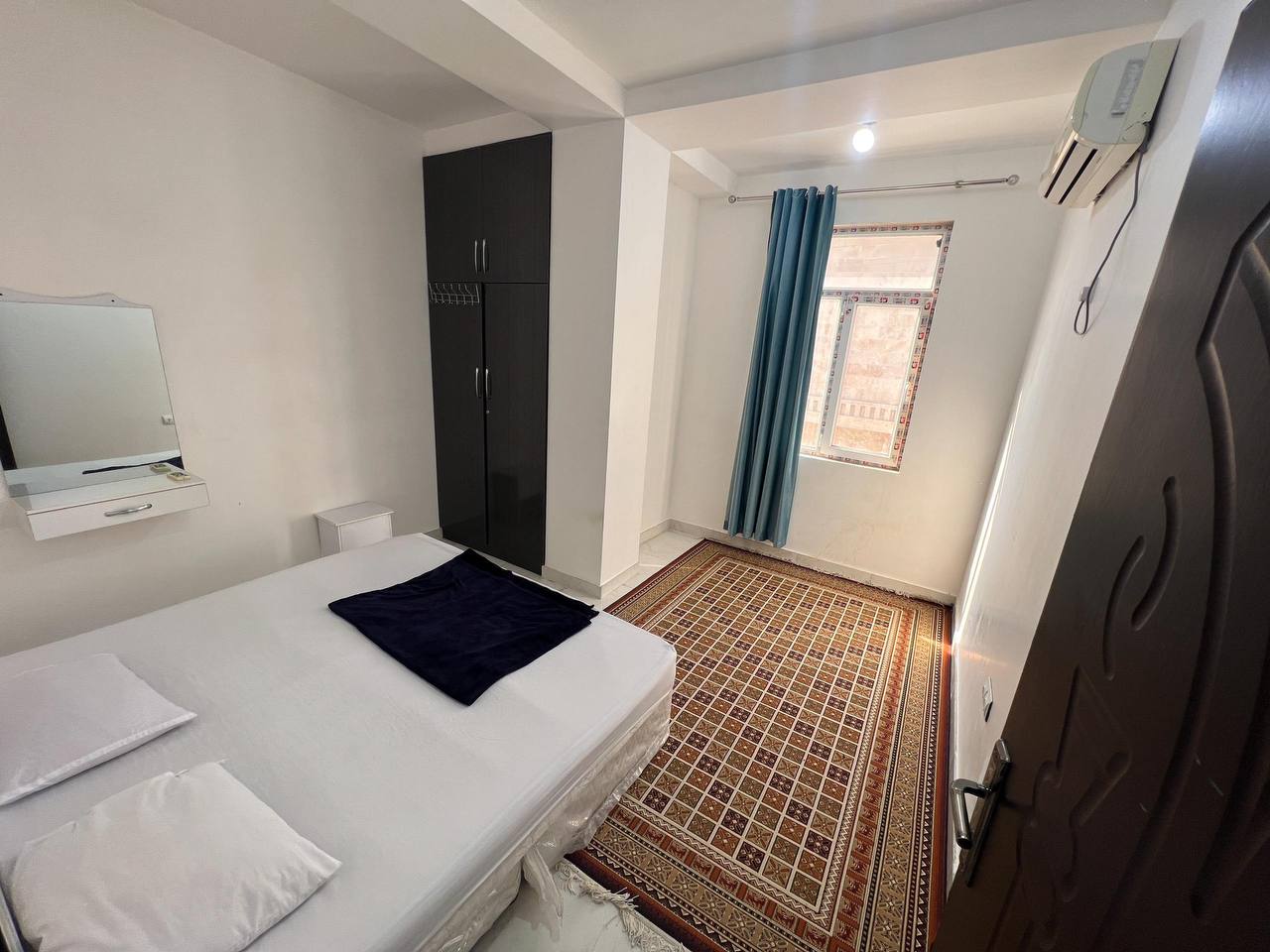 سوئیت مبله در شهرک نریمان قشم با متراژ 85 متر دارای دو اتاق خواب و سرویس خواب یک تخت دو نفره ، دو تخت تک نفره ، کف خواب ( پتو - بالشت - تشک ) به تعداد 2 نفر در طبقه دوم دارای آسانسور با 15 پله به همراه محافظ واقع شده است . امکان طبخ غذا در این واحد وجود ندارد ، فقط بشقاب ، قاشق ، چنگال به تعداد 5